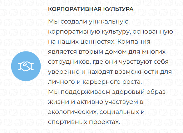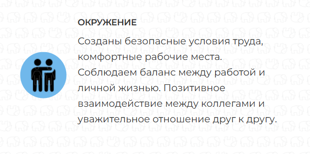 Люди являются основным ресурсом компании. Стабильность и комфортные условия труда способствуют достижению высоких результатов. Мы растем и развиваемся вместе с нашими сотрудниками.